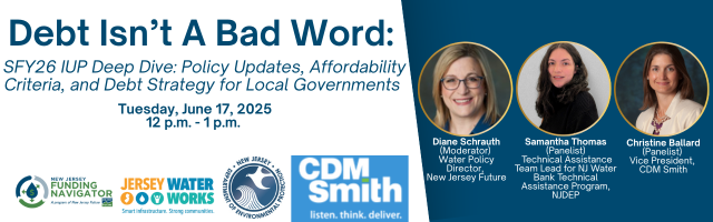 - Panelist: Samantha Thomas, Technical Assistance Team Lead for NJ Water Bank Technical Assistance Program, NJDEP