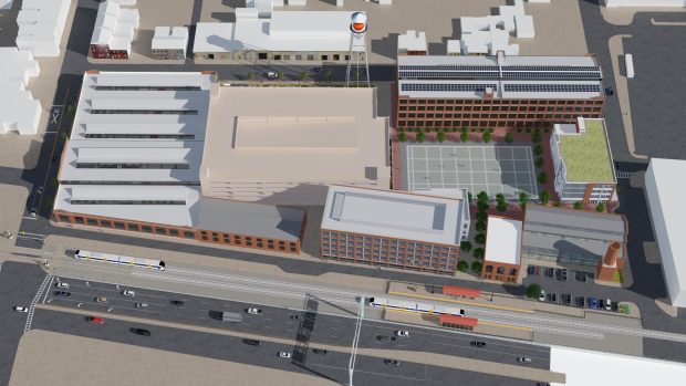The remaining historic buildings will be converted into mixed-use spaces with apartment lofts, office space, and room for retail, amenities, and restaurants. The buildings’ exteriors and distinctive historic features, such as facades and windows, will be preserved. Additionally, the company plans to construct three new buildings, which will contribute more mixed-use space and a structured parking garage. Ultimately, the property will include 192 apartments, of which 39 will be affordable; 175,000 square feet of commercial office space; 40,000 square feet of restaurant, amenity, and retail space; more than 900 parking spaces, and the public plaza. The office spaces are projected to bring in up to 900 new jobs.